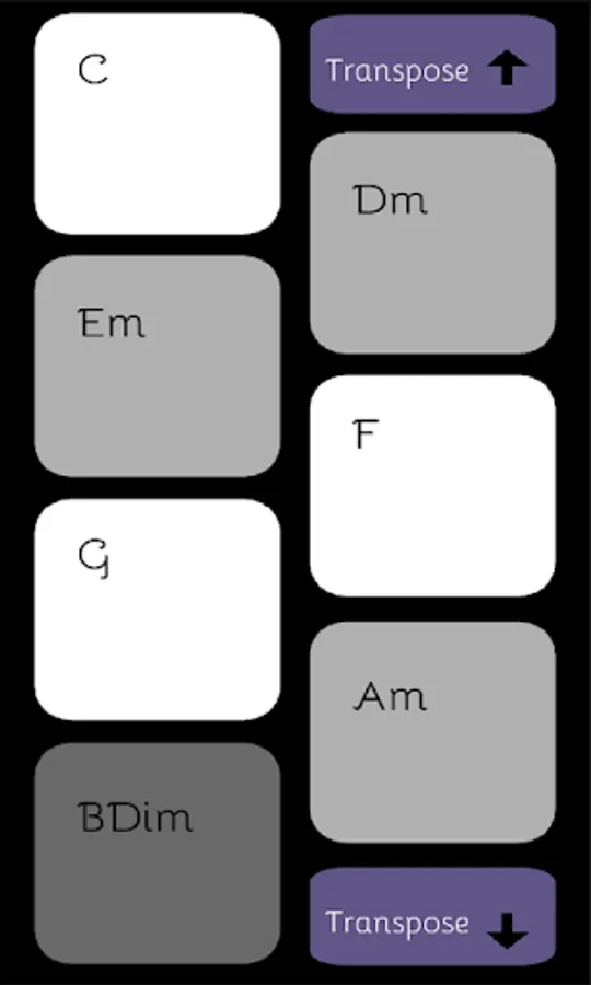 With PhoniChord anyone can play real songs, no music knowledge is required, just find the chords for your favourite song, select the key and then press the big on-screen buttons to play the chords and sing along.