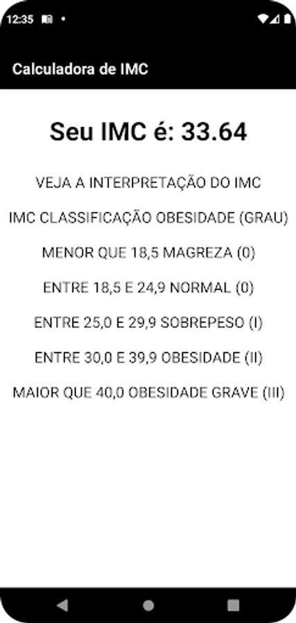 Calculadora IMC Screenshots