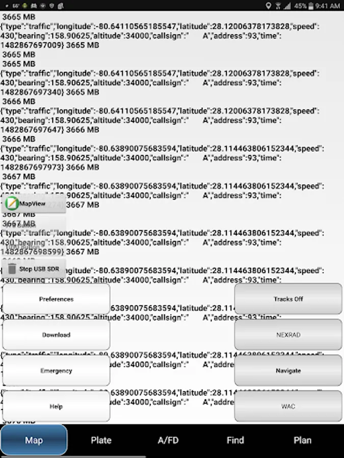 The RF-1 is based on the digital video broadcast receiver which are mass produced and very common in Europe. When connected to an Android tablet with the digitalxradio.com software the airline traffic is overlaid on a moving map.