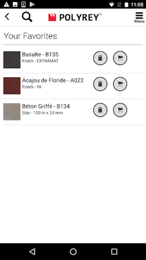 The Polyrey app allows you to order additional samples, save favorites, view product specs and more.