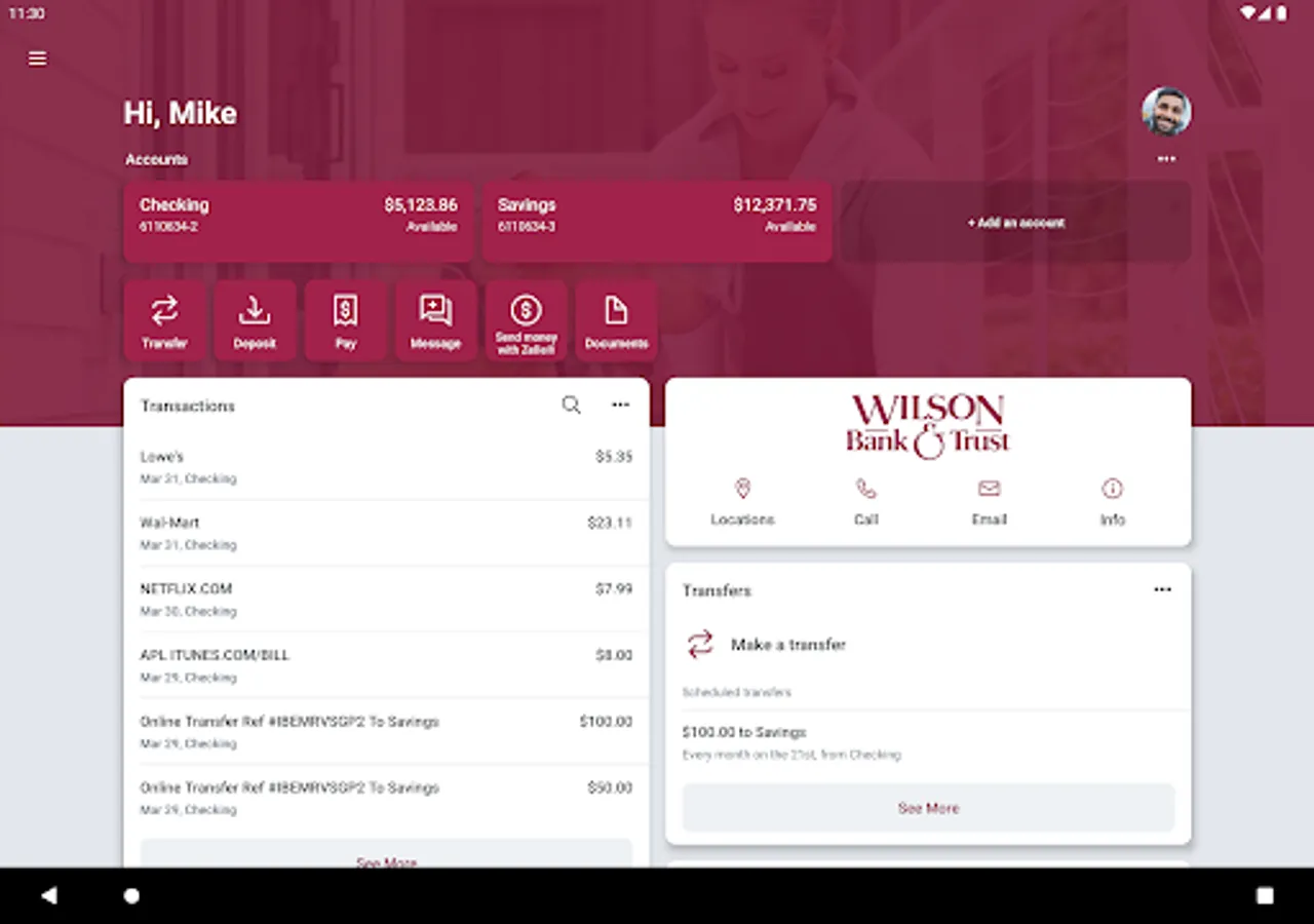 To use the Wilson Bank & Trust App, you must be enrolled as an Wilson Bank & Trust Internet Banking user. If you currently use our Internet Banking, simply download the app, launch it, and login with the same Internet Banking credentials. After you successfully login to the app, your accounts and transactions will begin updating.