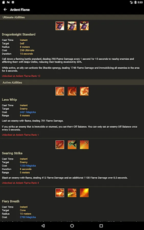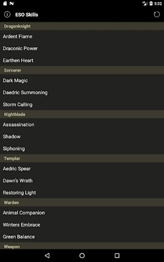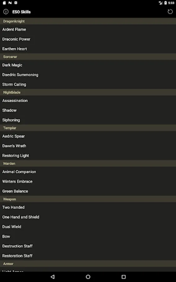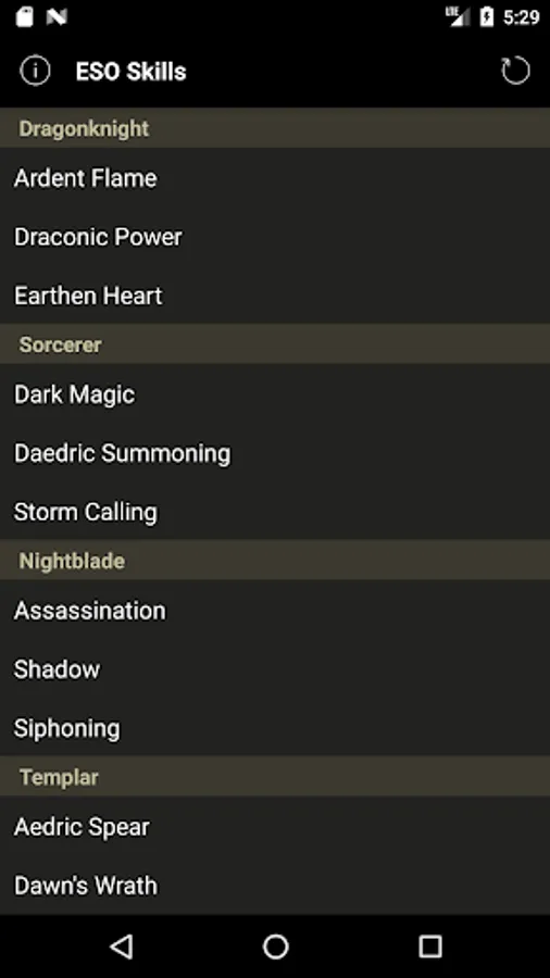 Looking for a quick and easy way to find a class skill detail for ESO? This is the app for you. It includes all skill trees from the game. Even better, you can use it offline once the app is set up!