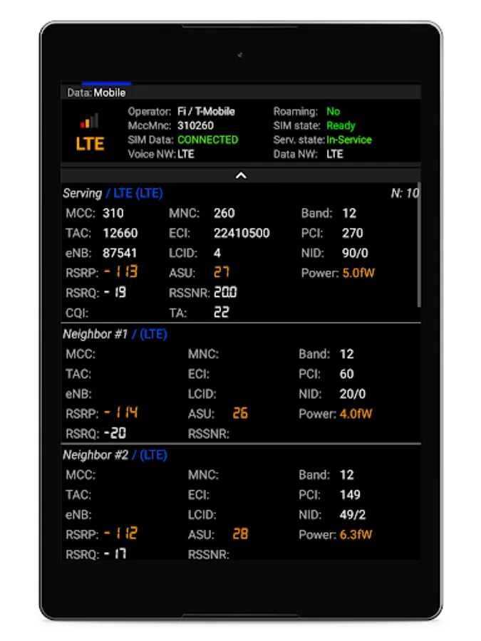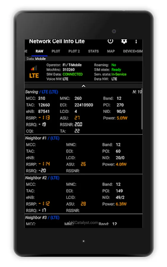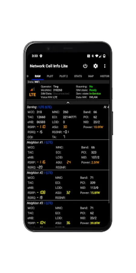 Network Cell Info Lite is an extensive mobile network and Wi-Fi monitoring app with measurement and diagnostic tools (5G, LTE+, LTE, CDMA, WCDMA, GSM). Network Cell Info can help troubleshoot your reception and connectivity problems while keeping you in the know about your local cellular coverage.