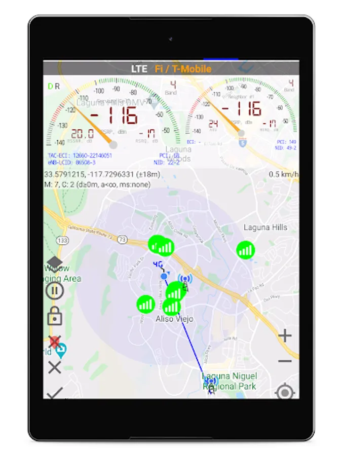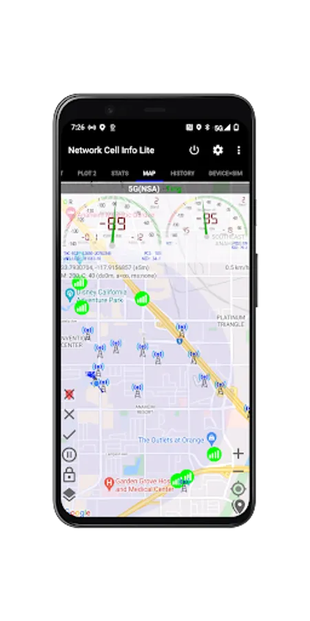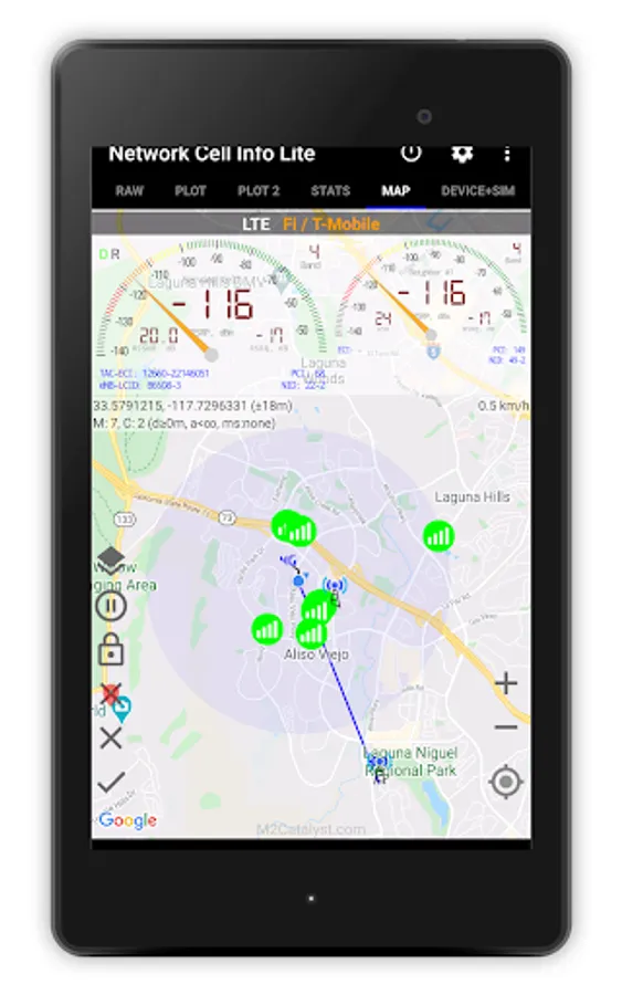 ☆Map with network cellular info and signal-meter gauges