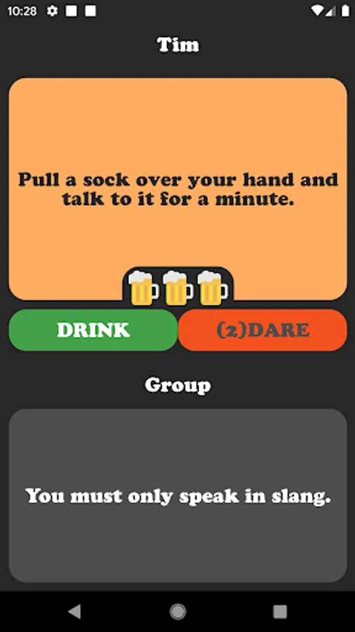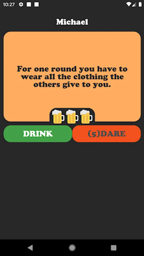 3. The player has the choice: he can reject the dare and drink the amount of sips or do the dare and let the other players drink the amount of sips. Instead of drinking 5 sips you can also drink a shot.