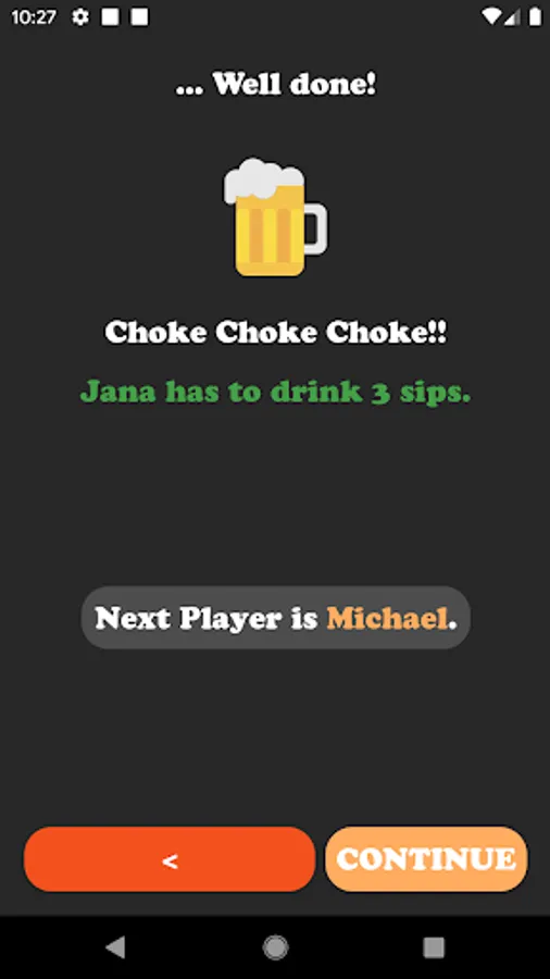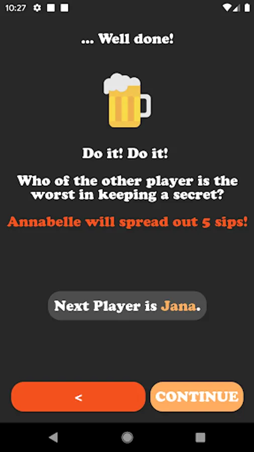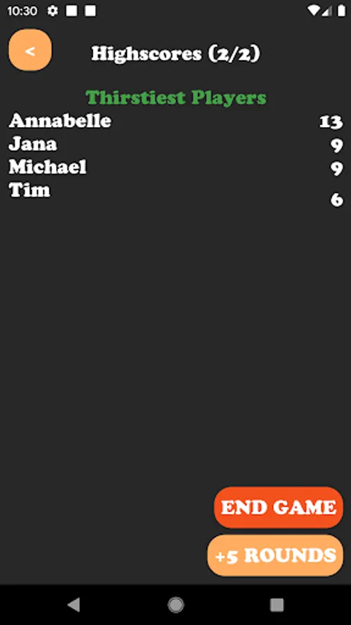 5. After five rounds the game is ending. A score-list shows the player who has drunk the most sips when rejecting dares. A second score-list shows the player who has taken the most dares with the highest points. As price for his guts he receives a drink from the player who drunk the most.