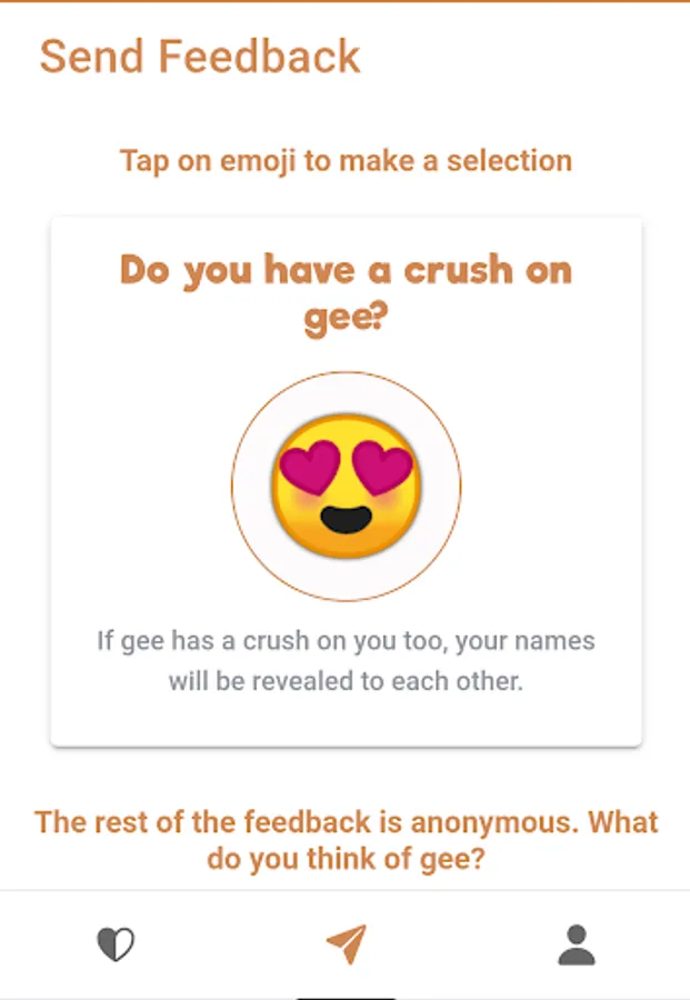 Tell your friends and others how you feel through emojis. Share your username and then others can tell you what they think of you. This is done anonymously. They can also send a crush emoji. If you send a crush to the same person, your names will be revealed to each other! "I have a crush on you" Say it in emoji!