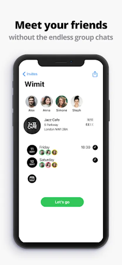 Wimit is the easiest way to find a place, date and time to meet your friends. Download the app and say goodbye to endless chat messages about when and where to go.