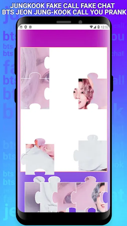 With this BTS Jungkook fake video call and chat game, you will know how easy for you to feel close to your Idol. With three options to choice on how to connect with BTS Jungkook which are video call, voice call and live chat messenger with BTS Jeon Jung-kook. To make even more fun, inside this fake call app you will find BTS Jungkook jigsaw puzzle and wallpaper.