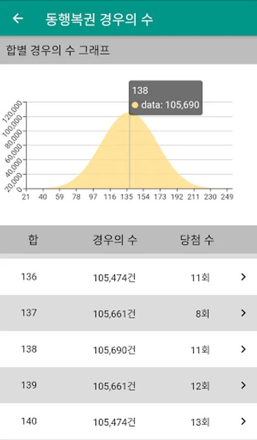 The highest probability is the area that appears most often within the range of 20 above and below based on 138.