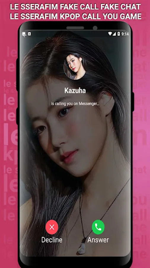 LE SSERAFIM video call game application is a simulation game that simulate LE SSERAFIM call you and chat with all members of the KPOP girl group of your choice: Sakura, Chae-won, Yun-jin, Kazuha or Eun-chae. It will bring fun and entertainment in your free time so you won’t be feel bore anymore because you will get a call from your idol. This KPOP game of chat messenger simulation with LE SSERAFIM member and also equipped with fake call and video call from LE SSERAFIM member your idol. You can brag and make fun of your family or your friends by tell them, look I have chat with LE SSERAFIM because the chat simulation is look like you have a real chat with LE SSERAFIM member, they will reply your text message. Or you can also prank them and say, look LE SSERAFIM video call or voice call me… So if you want to connect with LE SSERAFIM live chat and are a true FEARNOT (피어나), don’t wait any longer, download LE SSERAFIM video call game for free now and enjoy this KPOP game with your family and friends.