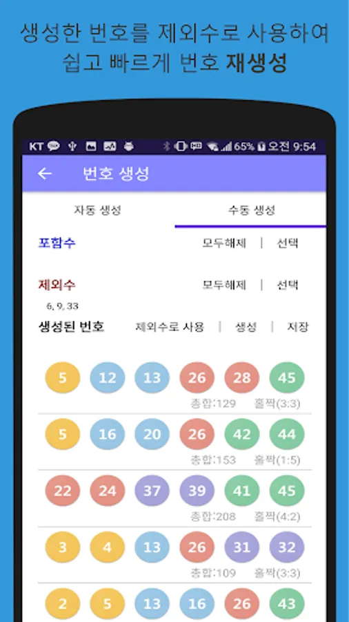1. Recommendation, automatic, manual input - Enter the number of included and excluded numbers