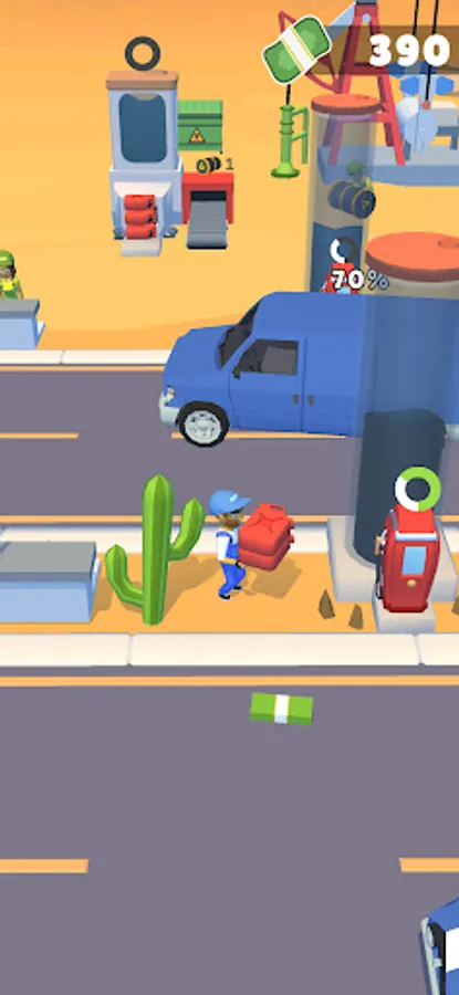 Build gas stations, car repair pits, recycling presses, and convenience stores.
