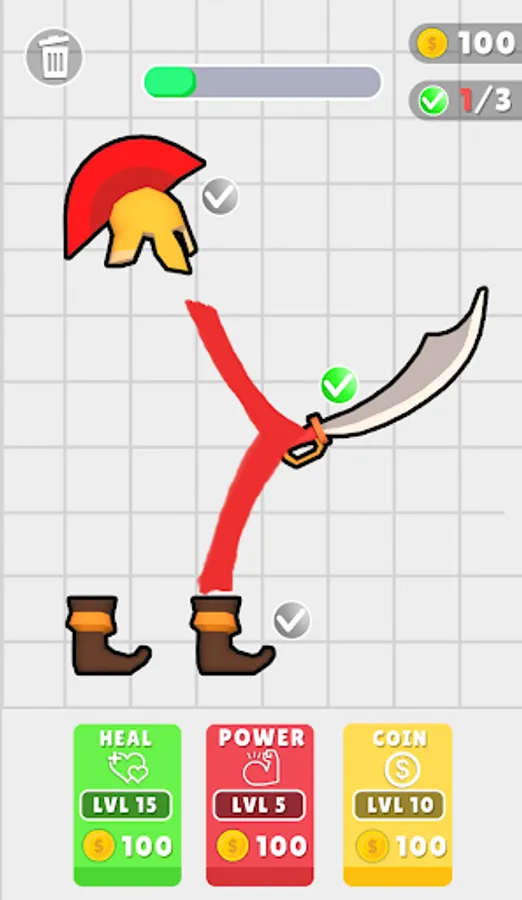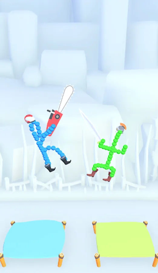 This is an addicting game where you have to draw your character by connecting all its parts. After the character is ready for battle, go to the trampolines and do not let yourself be damaged. Deal damage to your enemies with your weapons. Win every location and go on your way!
