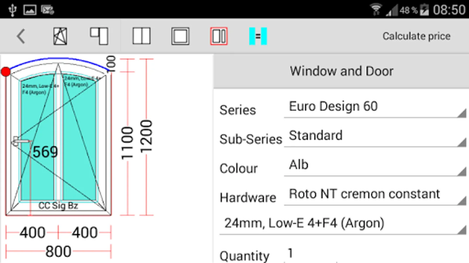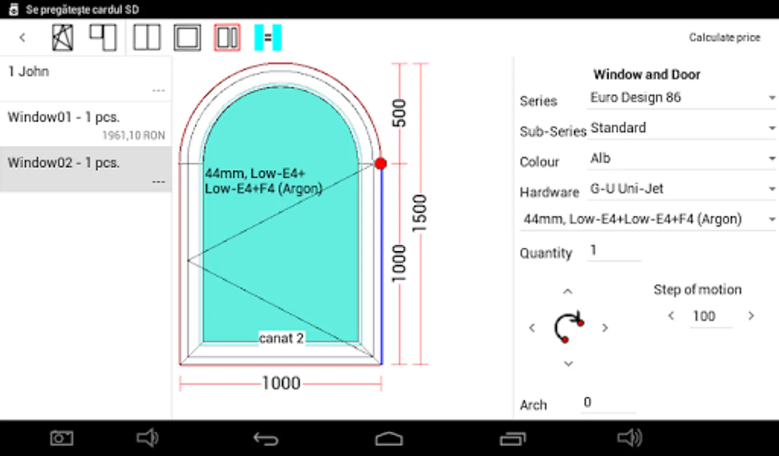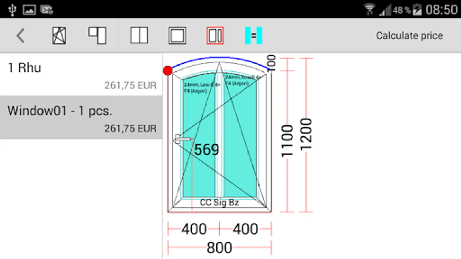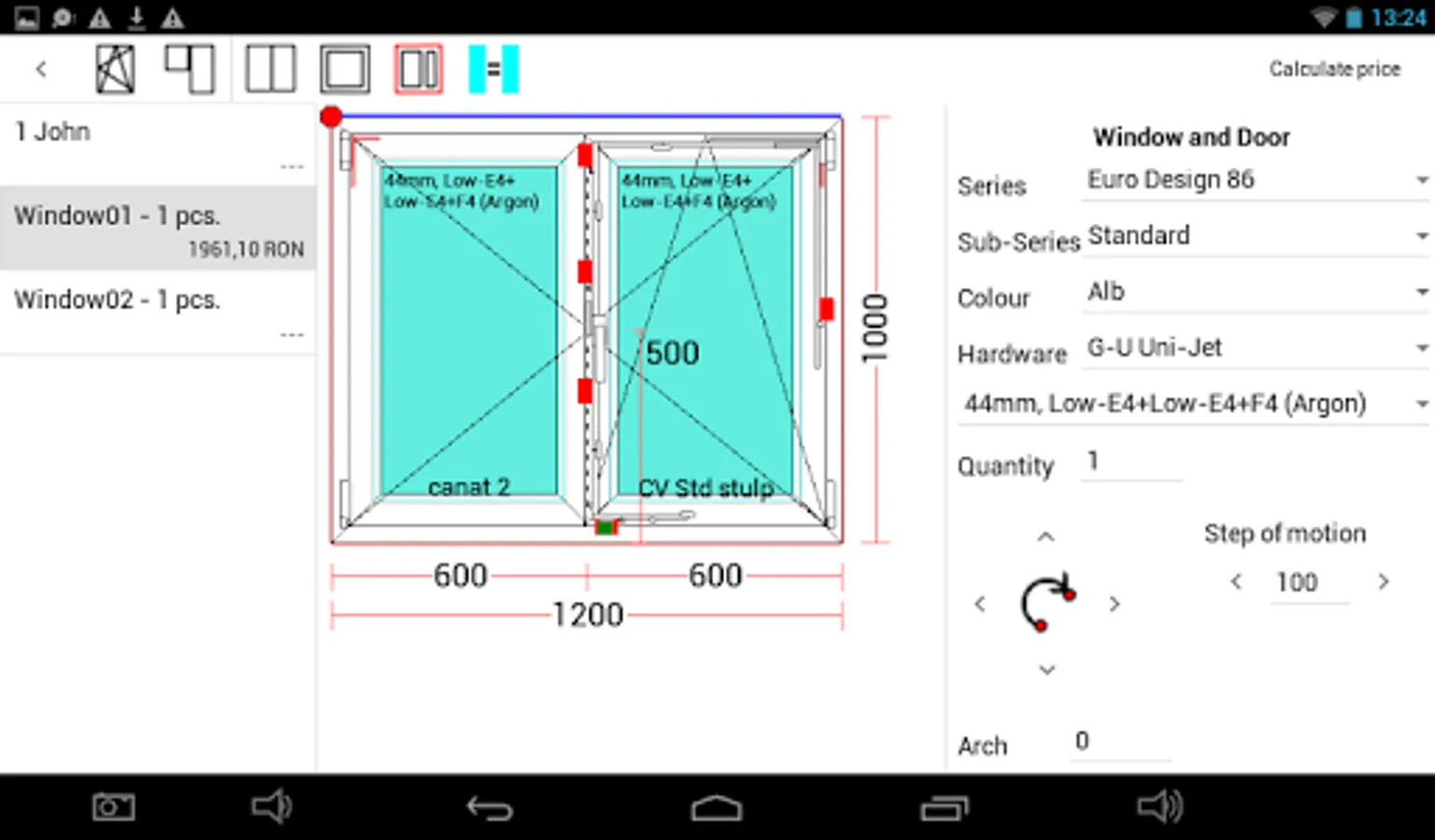 WinArhi 12 - mobile version for windows and doors calculation. Interface is optimized for tablets.