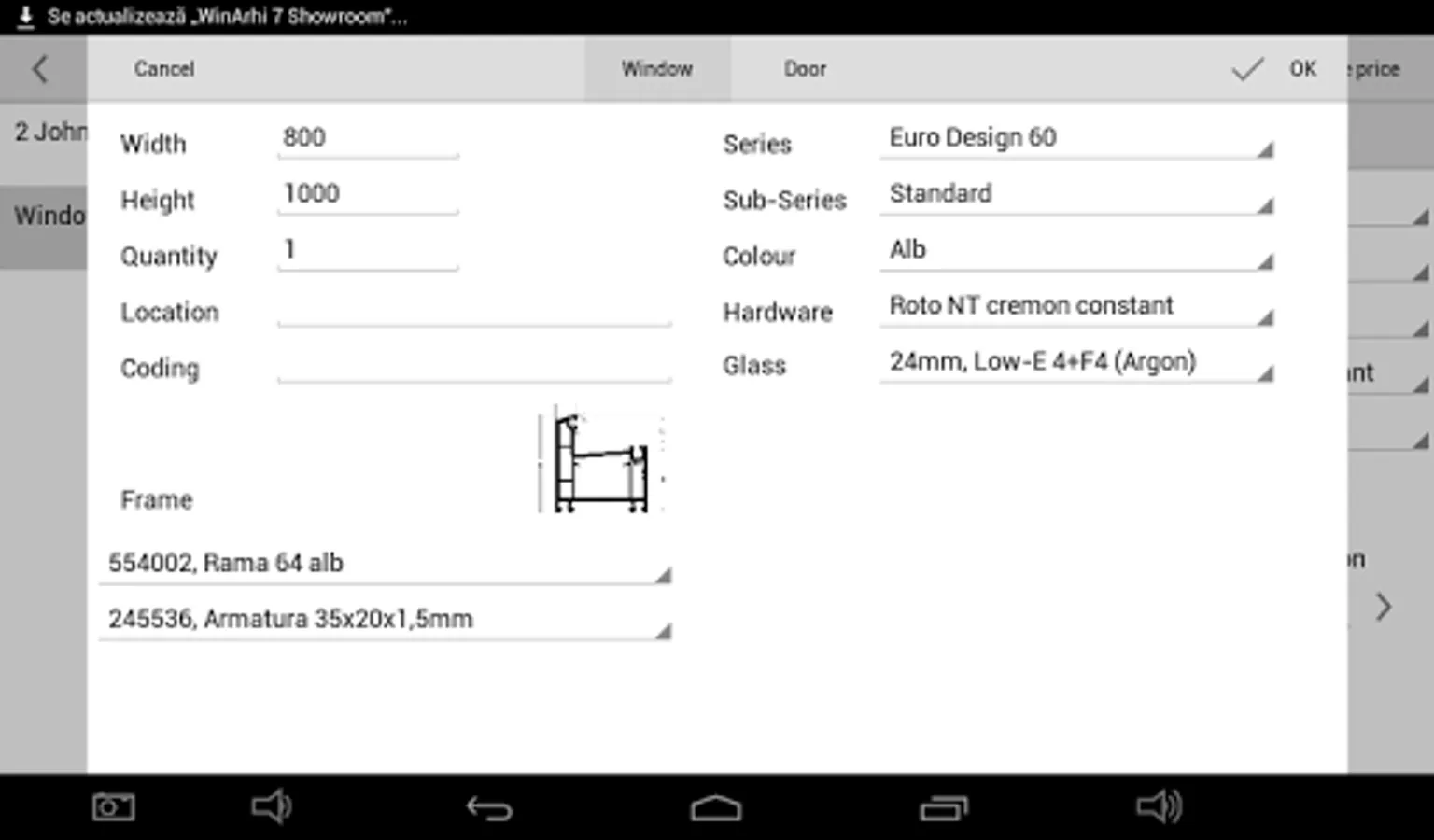 WinArhi 9 - mobile version for windows and doors calculation. Interface is optimized for tablets.