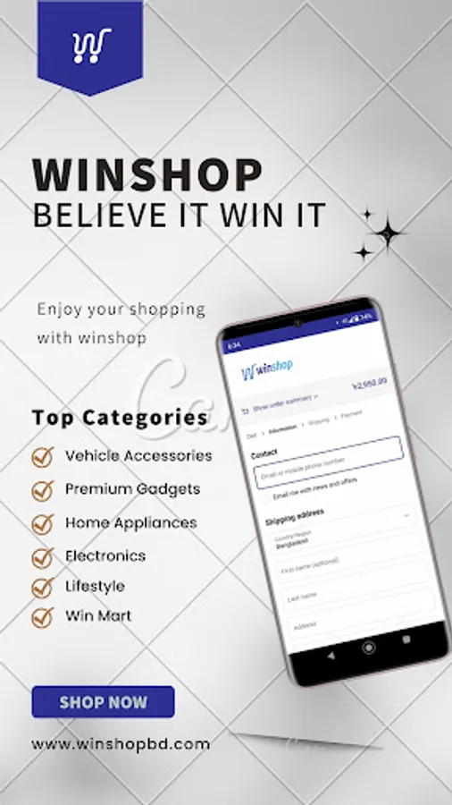 Our product selection includes everything from Gadget Items, Vehicle Accessories, Leather goods, Beauty & Skin Care Products, Cosmetics, Mobile Accessories, Home Appliances at the best price., and much more. Whether you're looking for the latest smartphone or a cozy blanket to curl up with on a rainy day, you're sure to find what you need at Win Shop.
