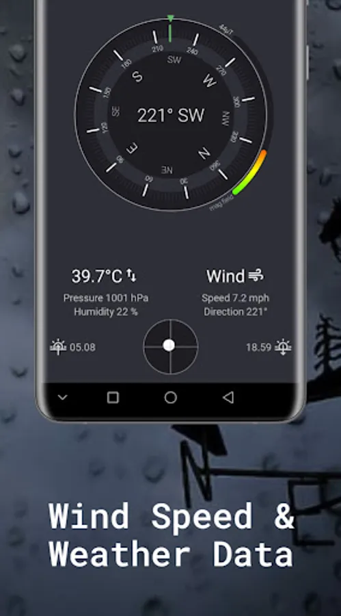 Wind Compass shows you which way is North so if you are inside or turned around, you can always know which way is north, along with the current wind direction. Ever needed to know what the current wind speed and direction is where you are at. Want to know how windy it is outside without having to run out there and throw some grass in the air.