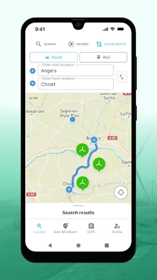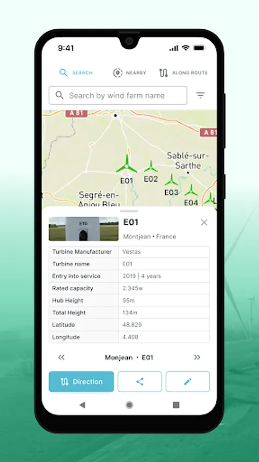 1. Wind farm location Along Route or Near By: You can use the interactive map to locate wind farms near you or along your route, whether you're travelling by car or by train.