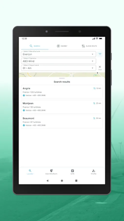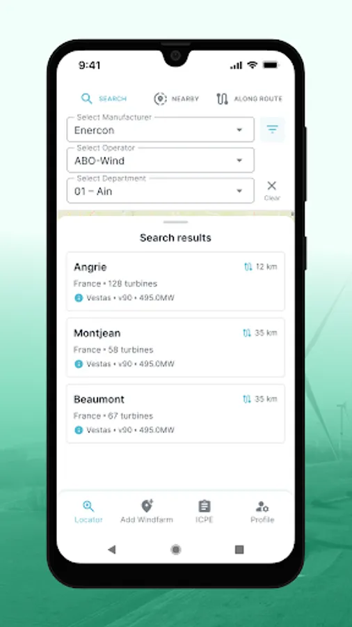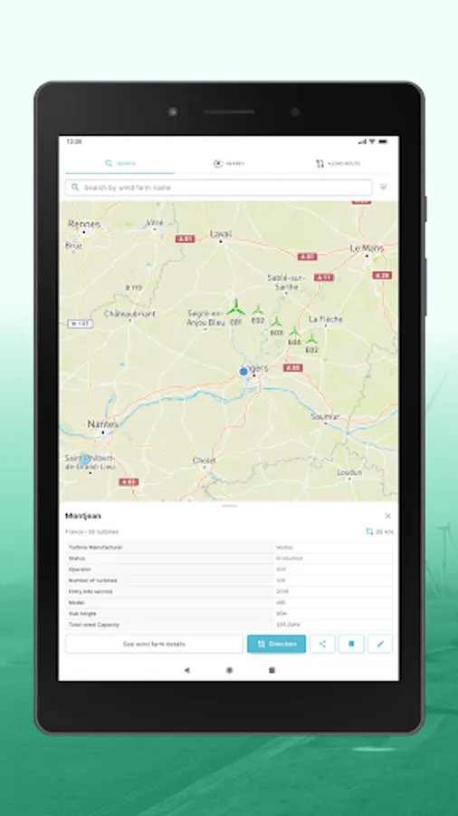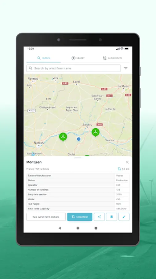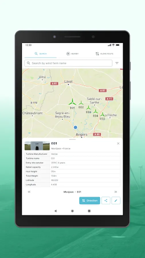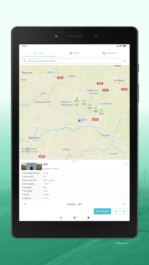 3. Search function: Wind Assets offers a function that lets you search for wind farms by name, manufacturer or department.