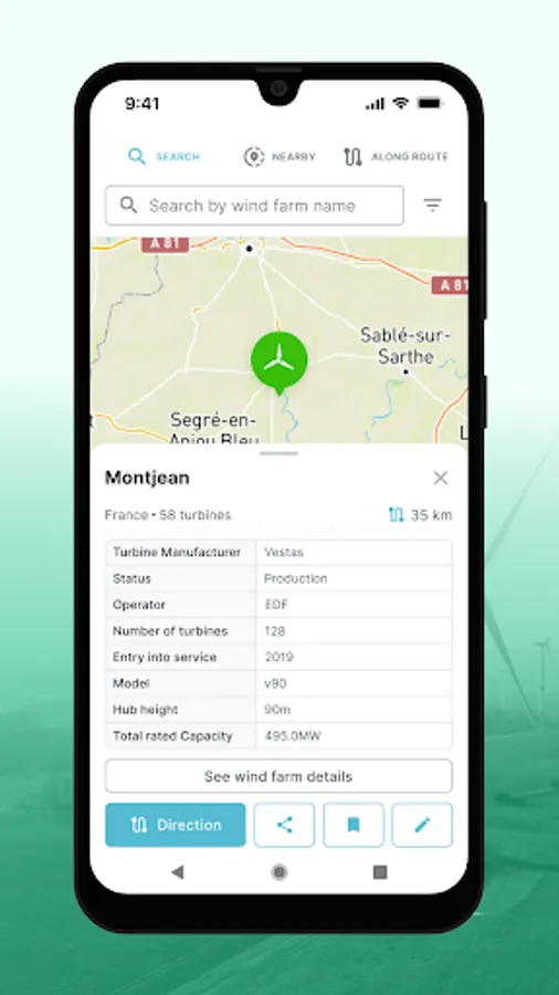 4. Favorites and bookmarks: Wind Assets lets you save the wind farms that interest you. With this feature you can create your list of must-see wind farms.