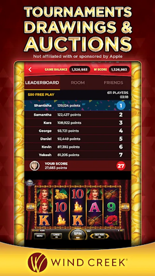 This application is for entertainment purposes only. Download the new Wind Creek mobile app by Wind Creek Hospitality today.