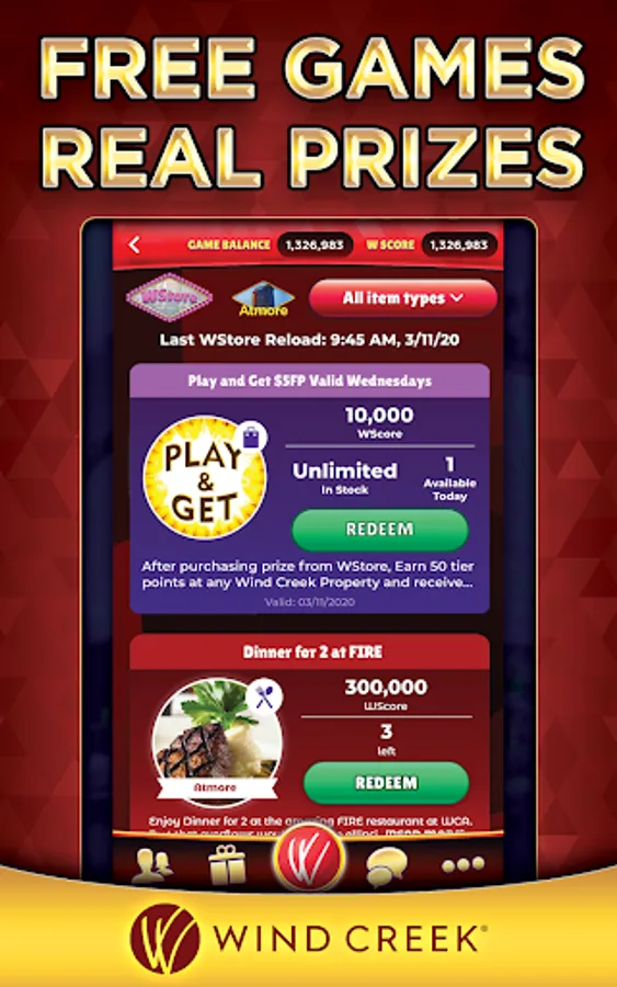 Take your Wind Creek Casino experience wherever you go with the Wind Creek mobile app! Keep up with all the promotions and events happening at your favorite Wind Creek property. Check your rewards status and casino offers from within the app. Play exciting games completely for FREE! Win prizes and rewards for dining, entertainment and hotel stays.