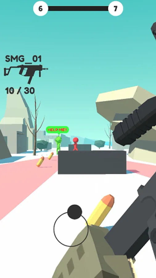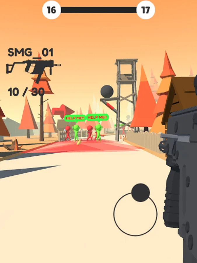 Drag and run. Release to shoot enemies. Be careful not to enter the enemy's sight