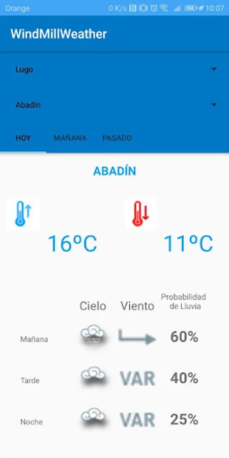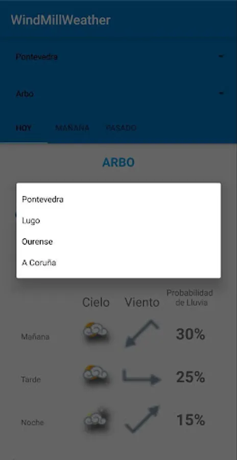 Meteorologica WindMillWeather application created by student-platform application development using Sacadas functions Meteogalicia