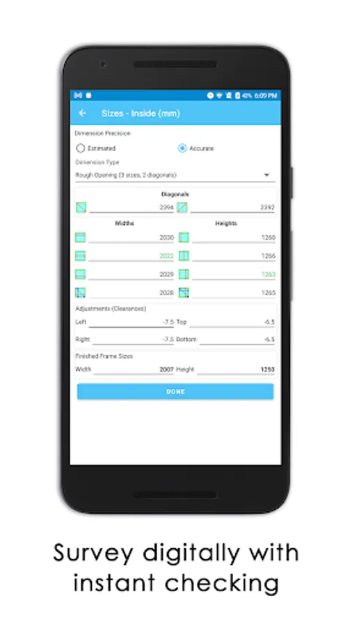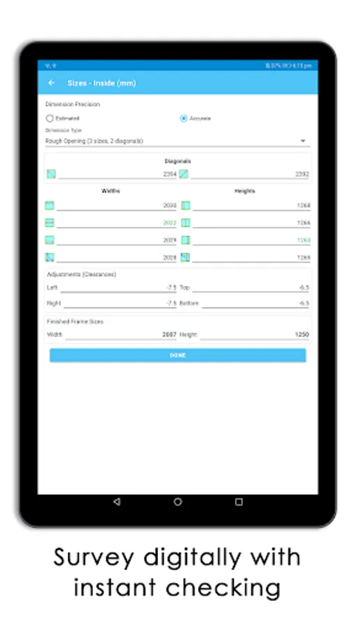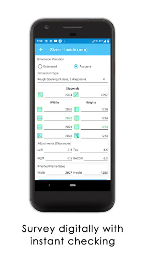 • Supplier surveyors to record precise sizes to be used for manufacturing.