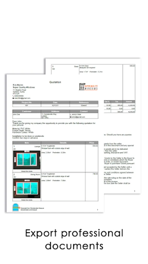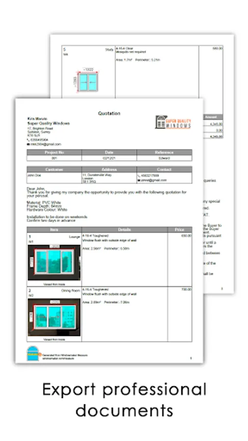 • QuotingPRO - Select a Design Style for your window or door and send a document directly from your phone or tablet to the client or to your office for further processing.