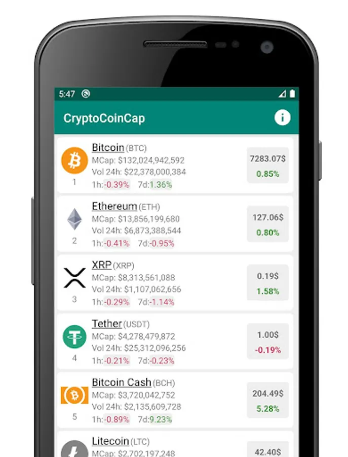 With our application you can track cryptocurrencies by marketcap rating such as Bitcoin, Ethereum, XRP, EOS, Tron and etc.