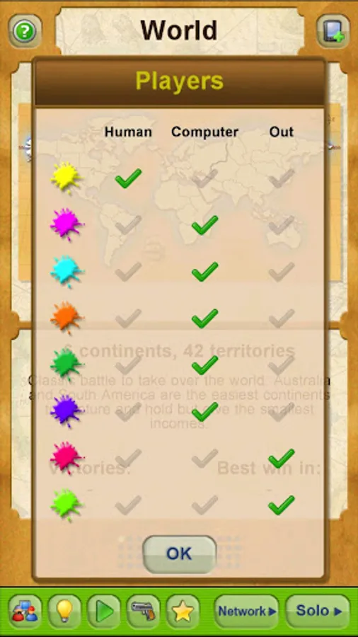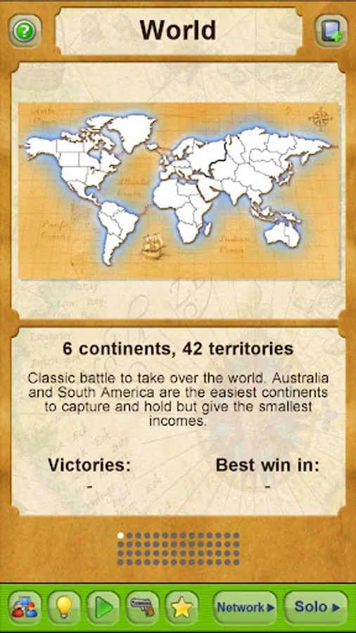 Conquest is a version of the classic board game where you combine risk and strategy to conquer the world. You can play solo or multiple human games against the randomly selected computer controlled opponents, each with their own personality and strong artificial intelligence.