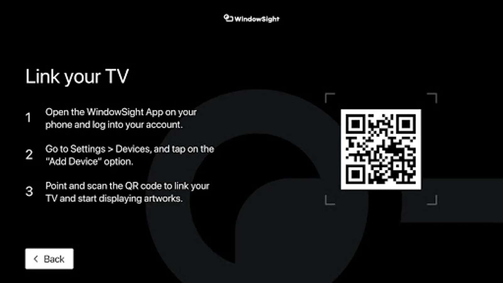 2. Scan the QR code on your TV to connect it with your WindowSight mobile account