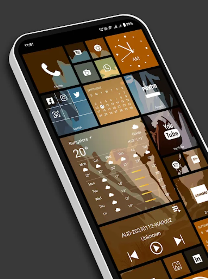 With WinTiles Launcher, you're in control. Customize your home screen effortlessly by rearranging tiles, creating folders, resizing tiles, and removing unwanted onesβall with an intuitive drag-and-drop interface reminiscent of the Square tile phone launcher.