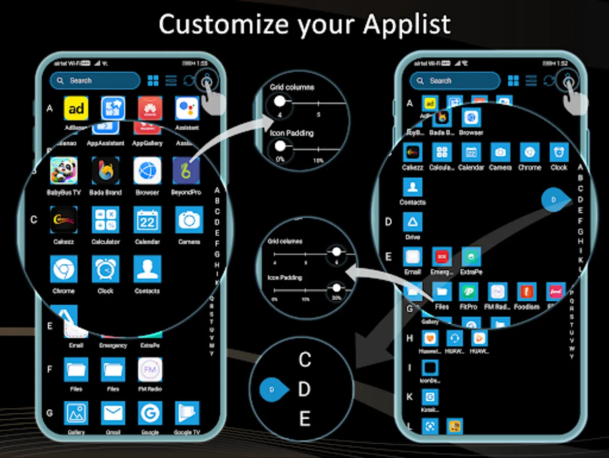 Keep your apps private by hiding them from the app list. For added security, WinTiles Launcher offers an app locking feature that requires a password to access locked apps.