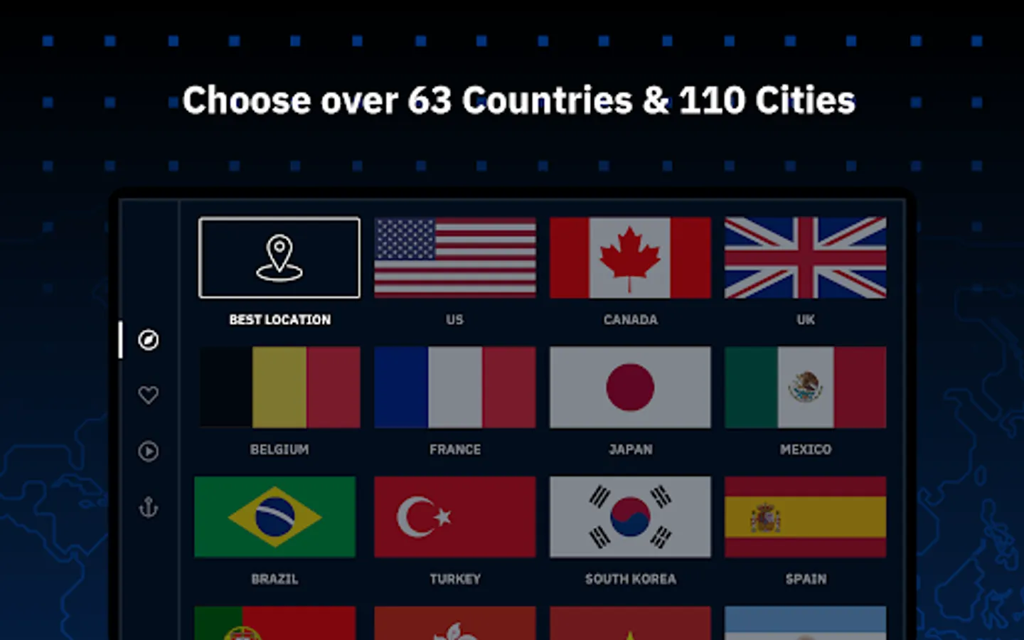 • Access to all 69+ countries & locations: Albania, Argentina, Australia, Austria, Belgium, Bosnia, Brazil, Bulgaria, Canada, Chile, Colombia, Croatia, Cyprus, Czech Republic, Denmark, Ecuador, El Salvador, Estonia, Finland, France, Georgia, Germany, Greece, Guatemala, Hong Kong, Hungary, Iceland, India, Indonesia, Ireland, Israel, Italy, Japan, Kenya, Latvia, Lithuania, Luxembourg, Malaysia, Mexico, Moldova, Netherlands, New Zealand, Nigeria, North Macedonia, Norway, Panama, Paraguay, Peru, Philippines, Poland, Portugal, Romania, Russia, Serbia, Singapore, Slovakia, Slovenia, South Africa, South Korea, Spain, Sweden, Switzerland, Taiwan, Thailand, Turkey, UK, Ukraine, United Arab Emirates, United States, Vietnam.