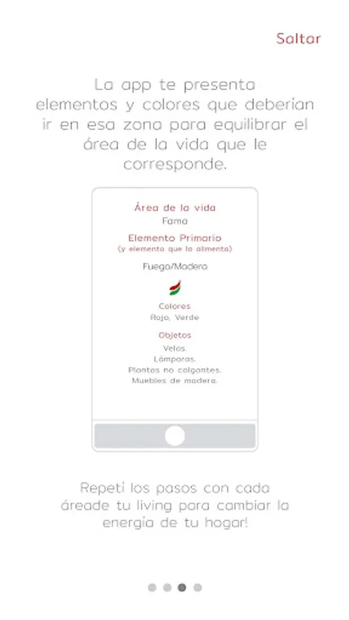 Una app móvil que a través de los conceptos del Feng Shui determina la ubicación de distintos objetos y colores para equilibrar la zonas del living basándose en la teoría de los cinco elementos.