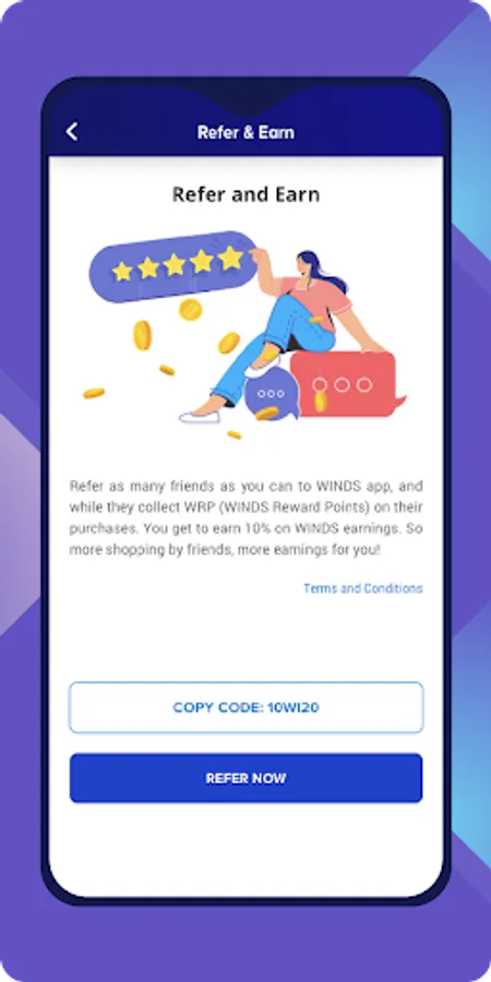 ● Earn a one-time WINDS Reward Points plus a lifetime commission (10% of WINDS earnings) upon referring the WINDS App to your friends & families.