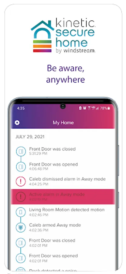 Download the Kinetic Secure Home app to gain full control over your home security system remotely from your Android devices. You can access your system from anywhere using your Go Kinetic username and password.