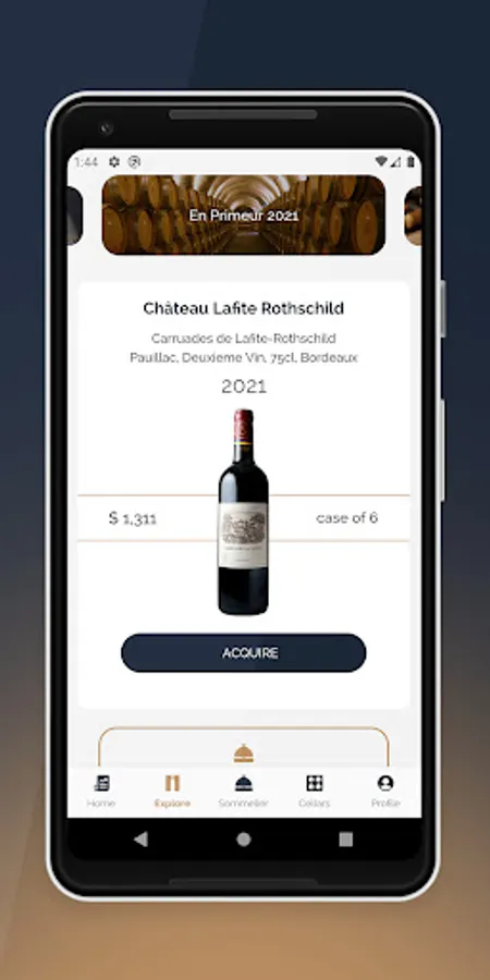Welcome to the VintageCellar App! Enjoy exclusive fine wine-buying experience from the most celebrated properties of Bordeaux, Burgundy, Tuscany and worldwide. Members benefit from secured storage facilities and cellar management tools to build, manage their own private space. Contact your dedicated sommelier in one click!