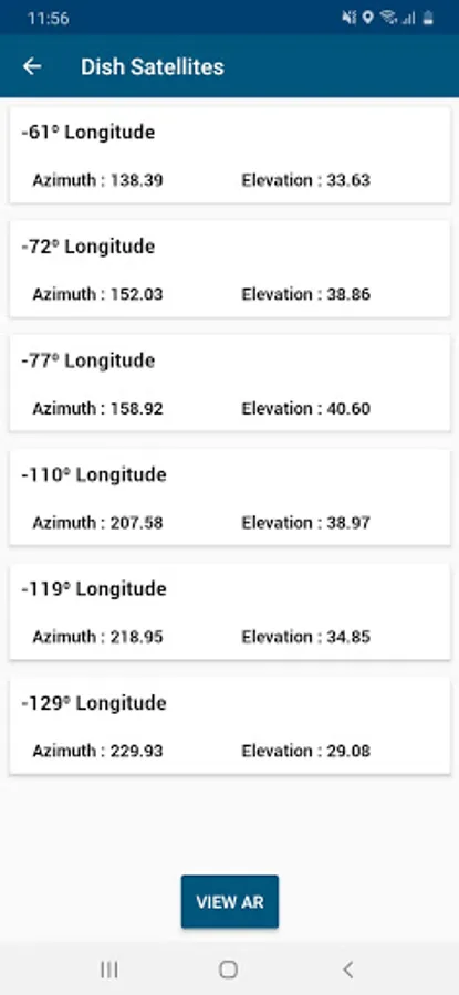 - Satellite Pointer - Use the AR view to locate DISH, DIRECTV, BellTV, or Shaw Direct satellites available for your mobile antenna. Simply point your phone at the southern sky to locate your target satellites and stay clear of signal obstructions such as trees and buildings. Azimuth and elevation pointing look angles are provided for easy pointing and setup of manual antennas.
