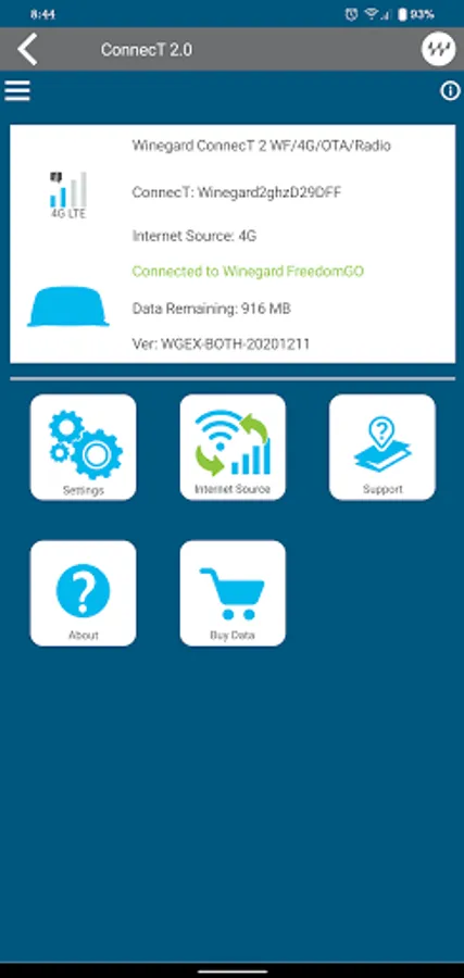 - View remaining Winegard LTE data, signal strength, network info