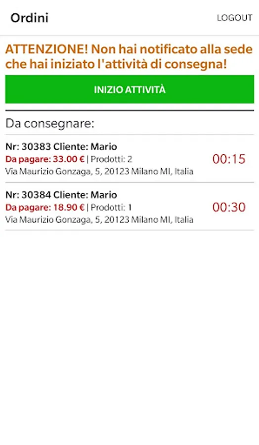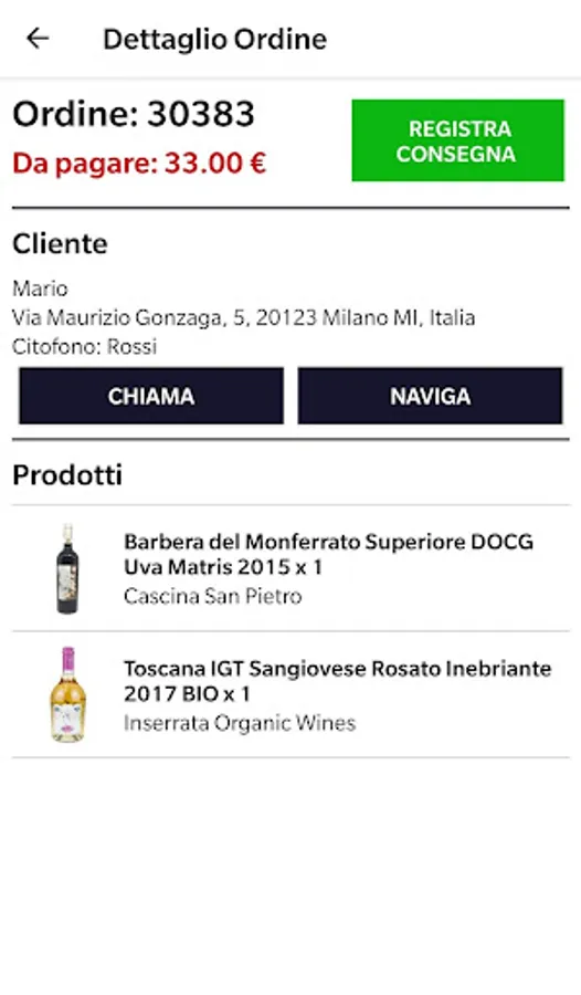 - "Call" button to contact the customer in case of problems with the delivery