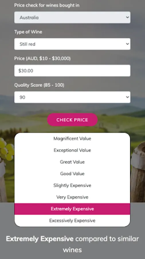 Check to see if the price of your wine is fair compared to other wines of the same type and quality. Regularly updated with thousands of similar wines.