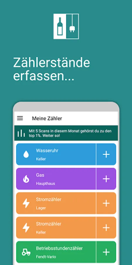 Meter reading for electricity, gas, water and operating hours for vintners and wine technologists and everyone who would like to become one with a simple scan.