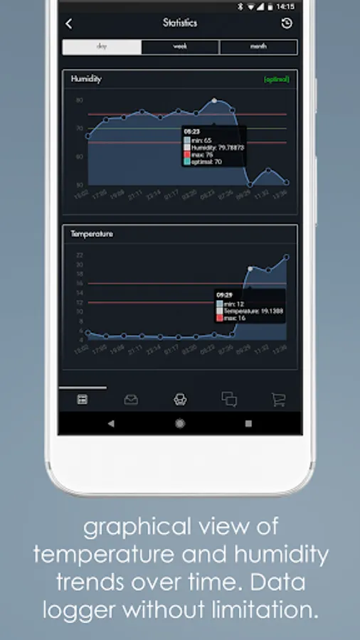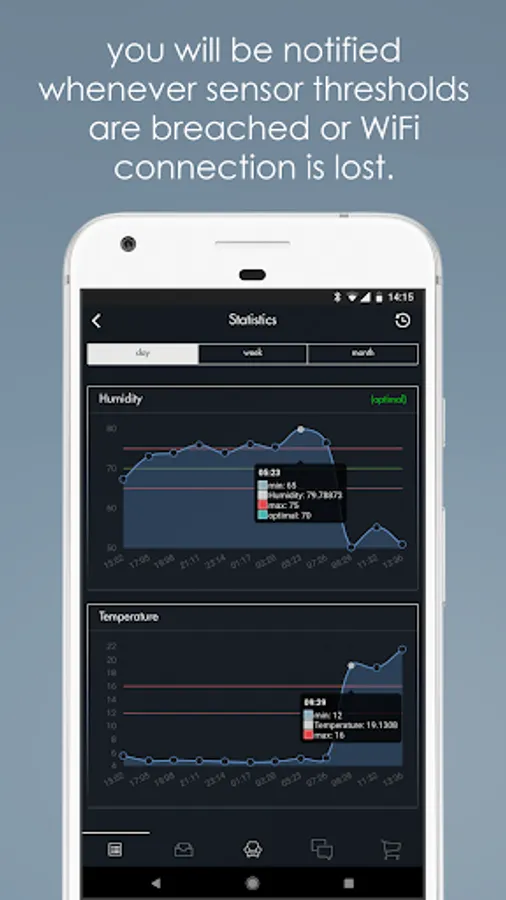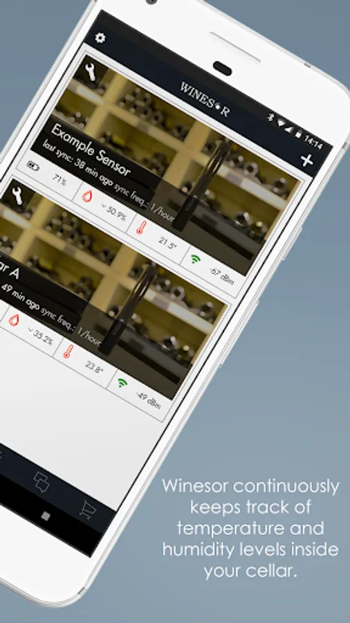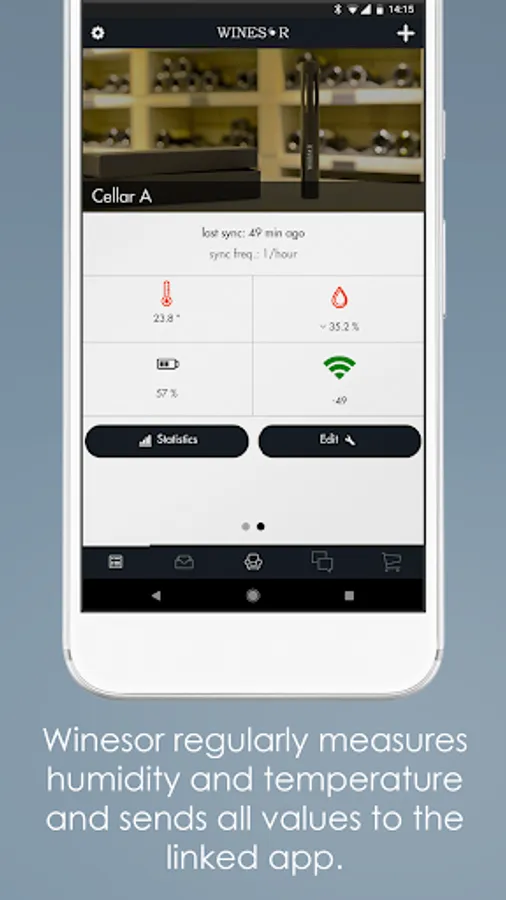 WINESOR regularly measures humidity and temperature and sends all values to the linked app.