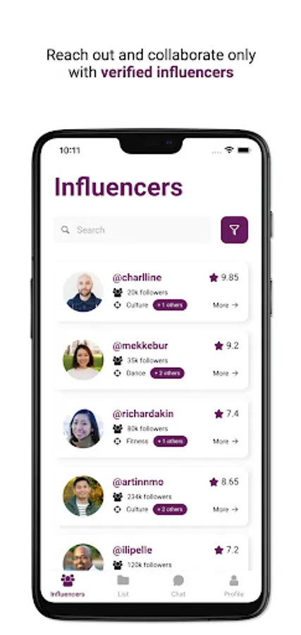 - Verified influencers and companies in one place