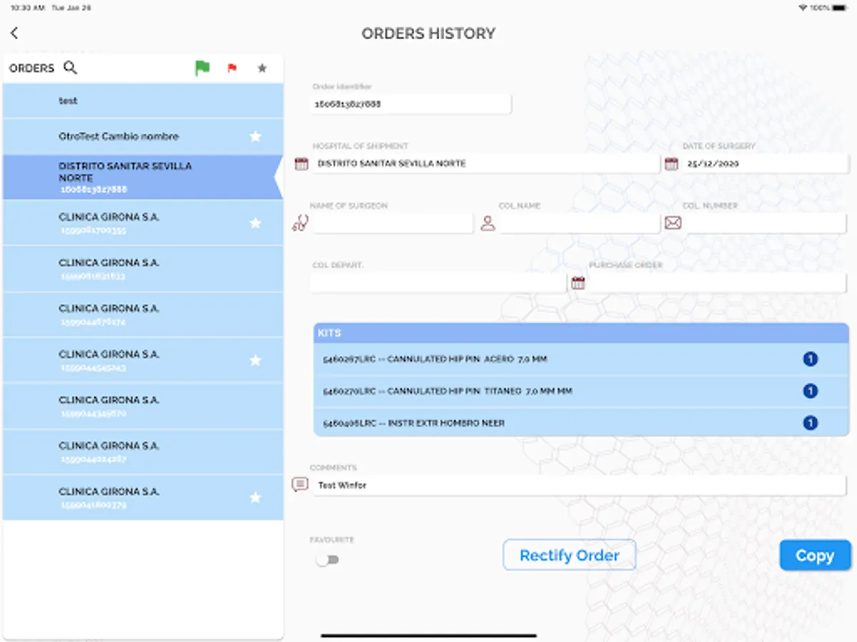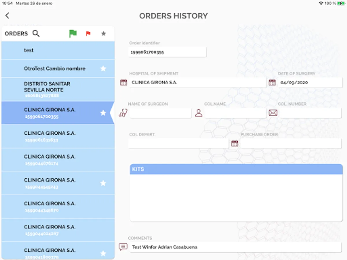 · History of orders.