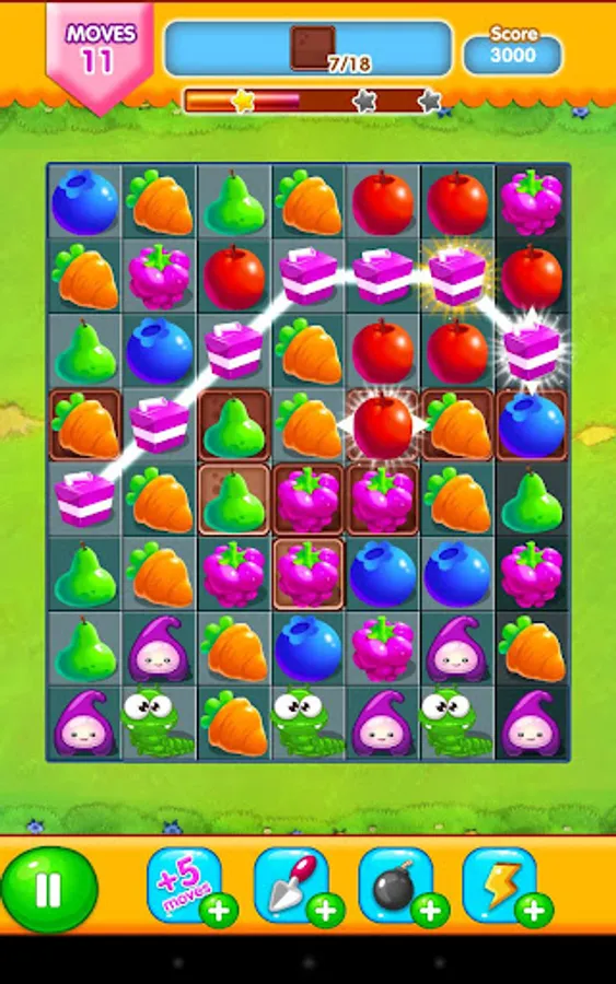 Connect colorful lines of fruit to solve compelling levels in this puzzle adventure!